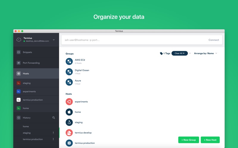 Termius (ex. Serverauditor), the most innovative and popular cross-platform SSH client. Manage your Raspberry Pi, a Linux machine or a UNIX server farm easily.